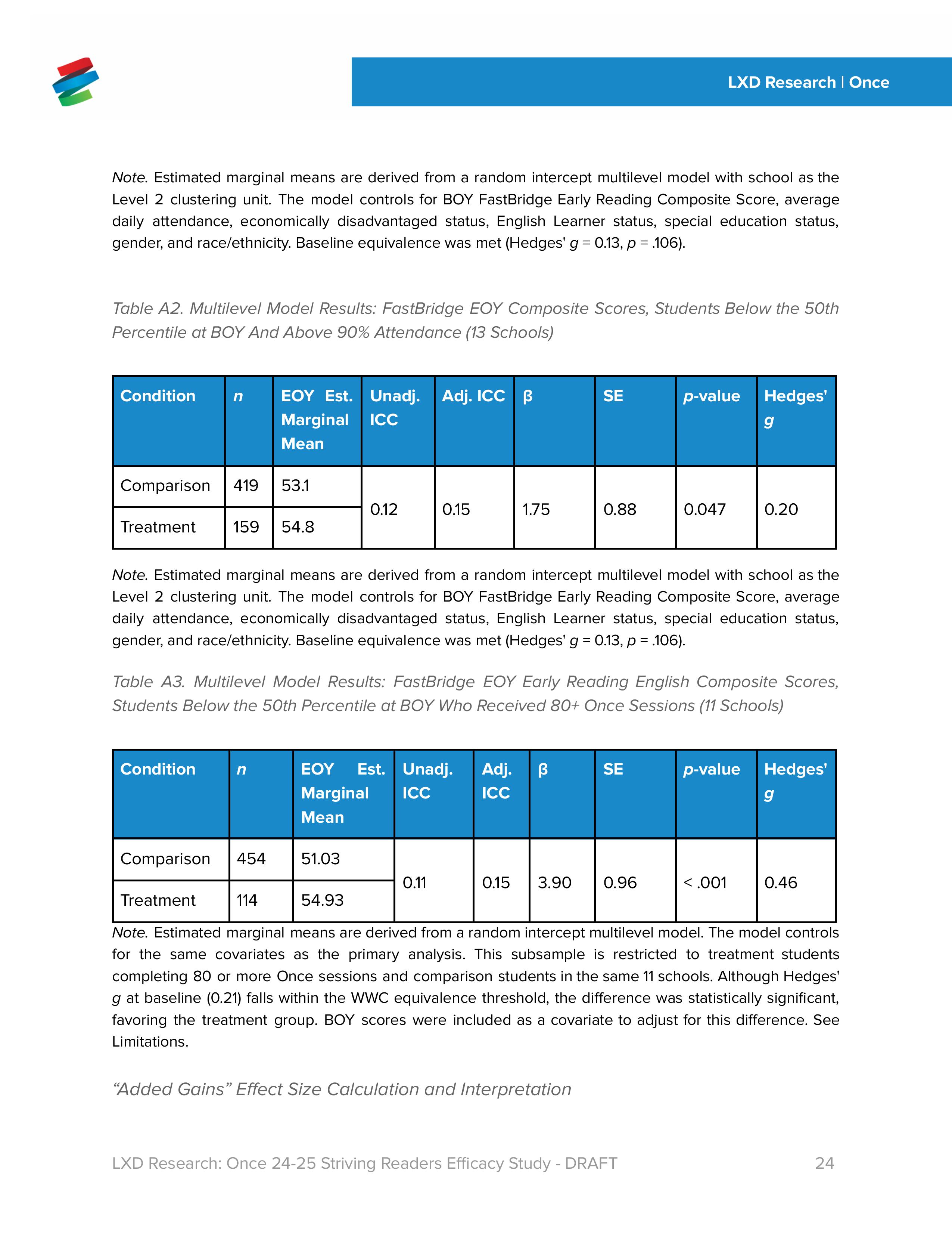 We're excited to share the results of the first quasi-experimental study (ESSA Tier II) on Once. A quasi-experimental study estimates the causal impact of an intervention on a target population without using random assignment but by matching treatment students to control students with similar demographics and similar BOY proficiency to the treatment students.